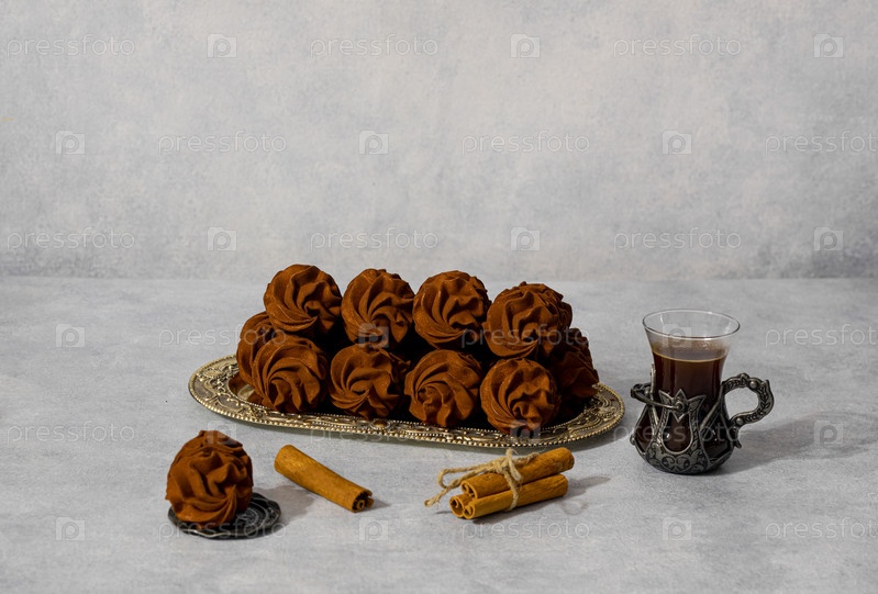 Кофе зефир с минимальным количеством сахара на сером фоне, здоровая пища. лакомство для гурманов
