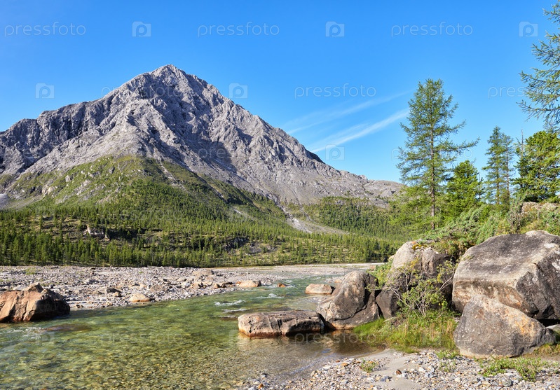 Горная река в широкой пойме