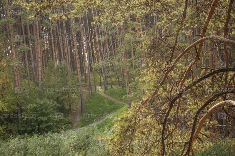 Осенняя лесная природа. Яркое утро в красочном лесу с солнечными лучами сквозь ветви деревьев. Пейзаж природы с солнечным светом