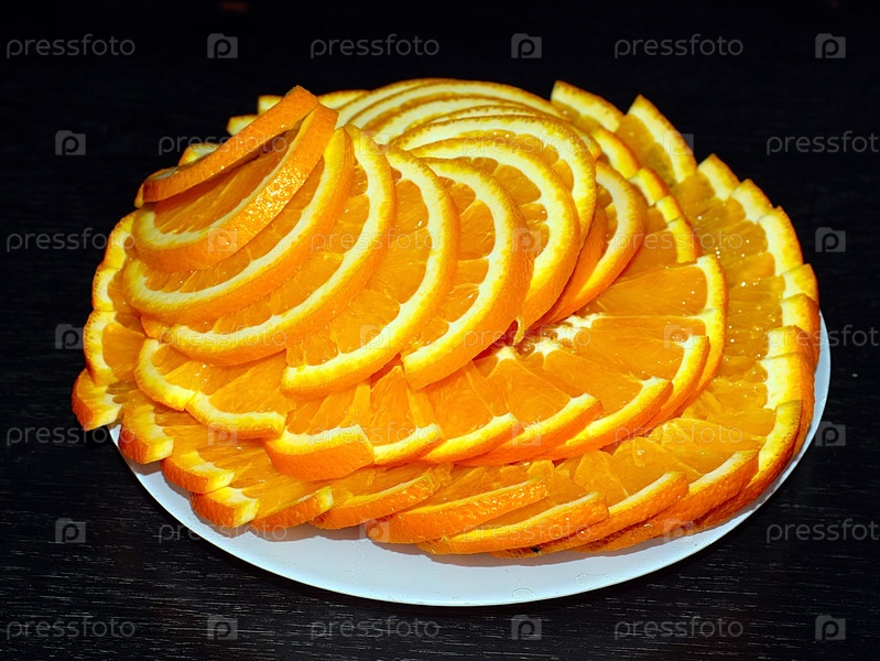 Прекрасный нарезанный спелый апельсин как часть угощения
