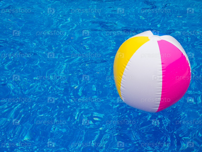 Надувной мяч плавает на поверхности воды, пространство для копирования