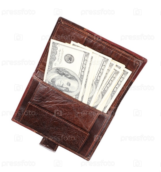 Кожаный кошелек с изолированными долларами