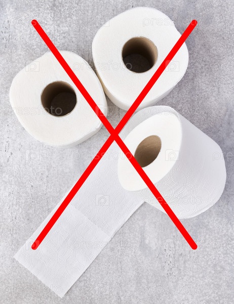 Концепция отказа от одноразовой туалетной бумаги из-за роста цен в условиях кризиса, рулоны туалетной бумаги перечеркнуты красным крестом