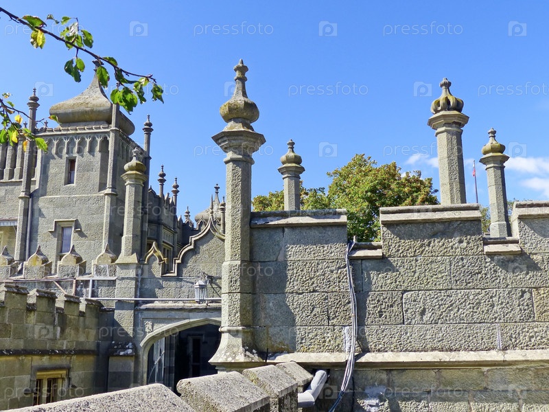 Воронцовский (Алупкинский) дворец — памятник романтизма, построенный в 1828—1848 годах по проекту известного английского архитектора Эдуарда Блора (1789—1879). Восточный вход во дворец. Южный берег Крыма