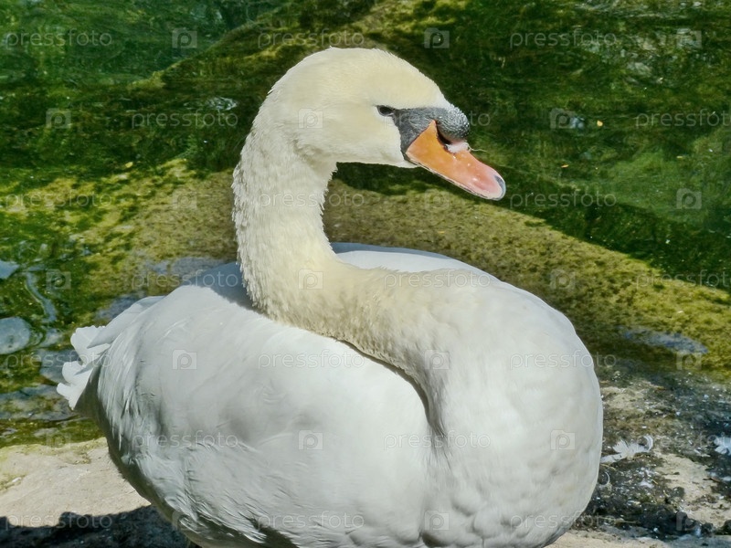 Белый лебедь в парке Воронцовского дворца. Лебедь - шипун назван из-за звука, издаваемого при раздражении. Характерный нарост у основания клюва