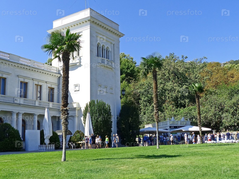 Фасад Ливадийского дворца, здесь в 1945 году проходила Ялтинская конференция антигитлеровской коалиции. Историческая архитектура и природа Южного Крыма