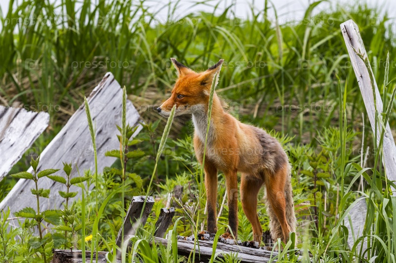 Дикая лиса или Vulpes vulpes beringiana, Камчатка, Россия