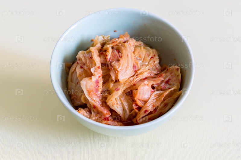 Кимчи из капусты в миске, очень популярная корейская традиционная ферментированная еда