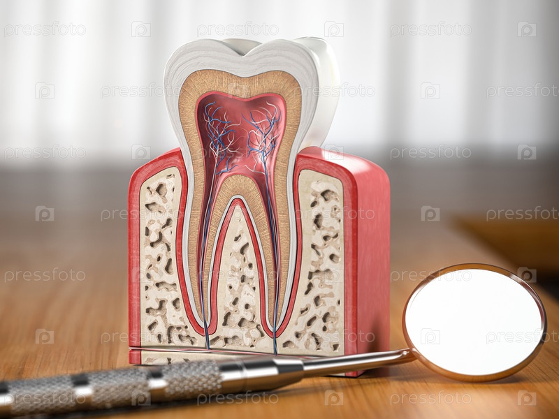 поперечное сечение модели зуба