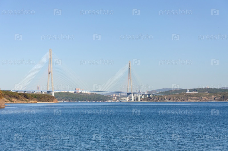 Россия, Владивосток - 9 октября 2019 г.: Дальневосточный федеральный университет. Вид на мост с берега набережной