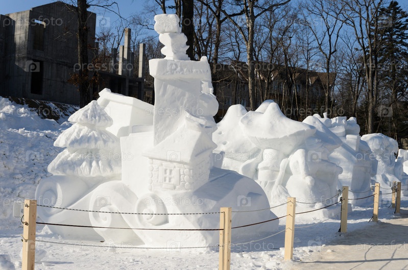Владивосток, Россия - 5 января 2020 г. Снежные композиции на базе отдыха "Комета"
