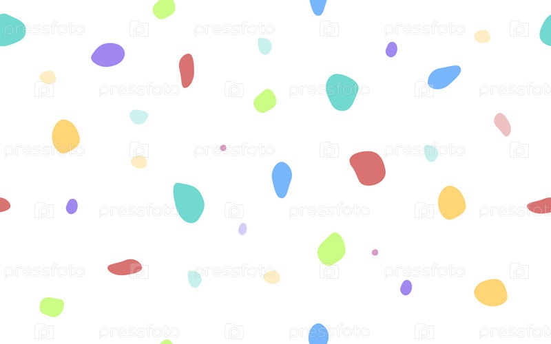 Абстрактный бесшовный узор из точек. Различные размеры и формы разноцветных точек на белом фоне - идеальный бесшовный узор