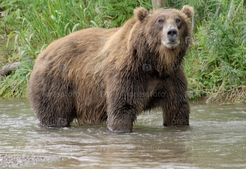 Большой бурый медведь в реке