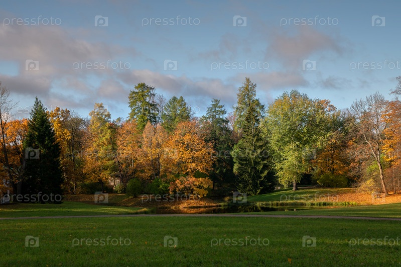 Осенний пейзаж в Екатерининском парке в Царском Селе в солнечный день, Пушкин, Санкт-Петербург, Россия