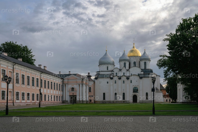 Вид на Софийский собор Новгородского кремля в летний день, Великий Новгород, Россия