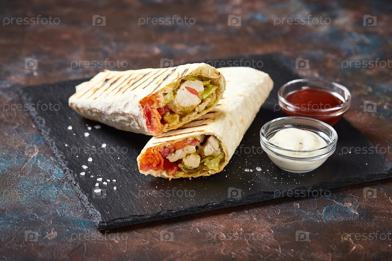 Восточная традиционная шаурма с соусами