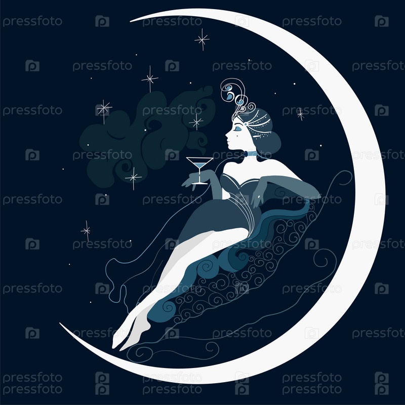Графический силуэт женщины в стиле арт-деко. Иллюстрация в плоском стиле. Модная роскошь