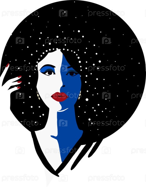 Плоский силуэт моды иллюстрация красивой женщины в большой шляпе. Концептуальный рисунок Звездной ночи