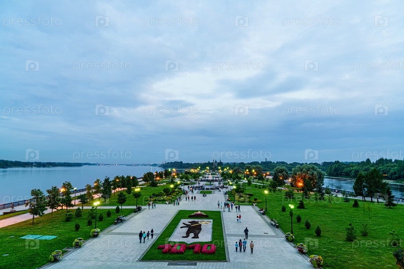 Ярославль, Россия. Паркуйтесь по стрелкам. Государственный герб города Ярославля. Место впадения реки Которосль в Волгу