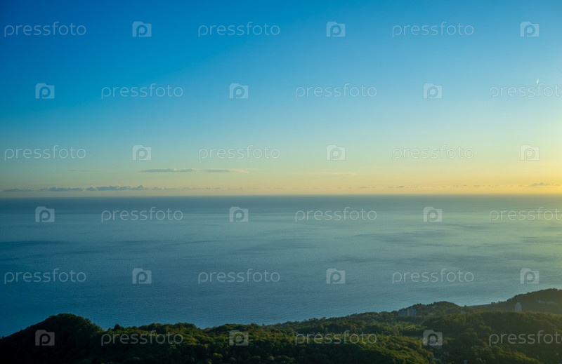 Панорама морского пейзажа с зеленой береговой линией