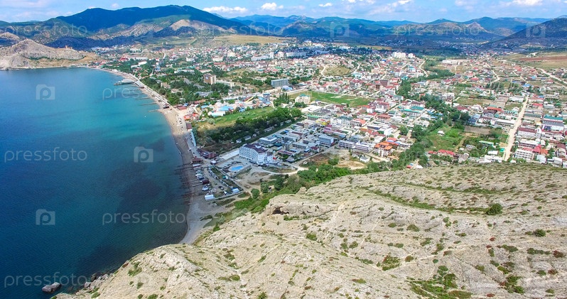 Вид с воздуха на горный пейзаж у моря