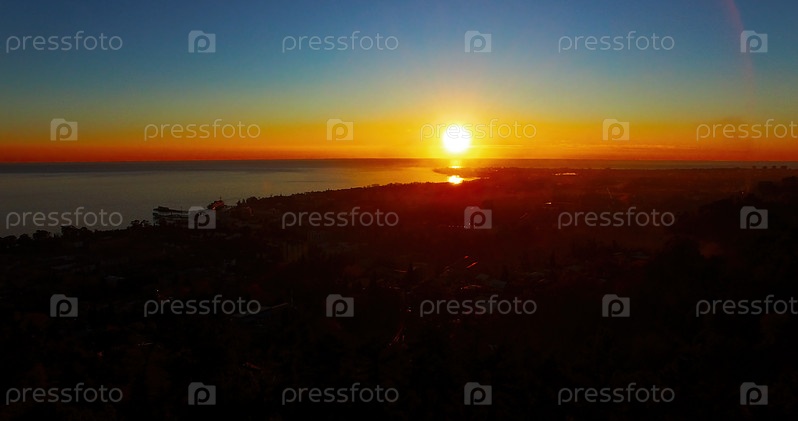 Вид с воздуха на закат над городом Сухум, Абхазия