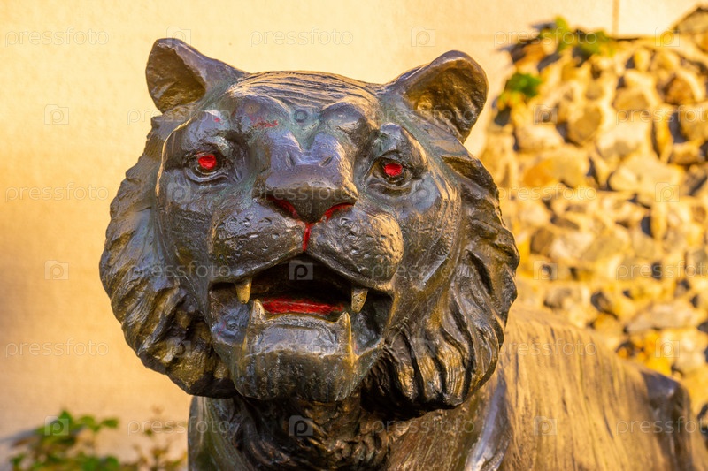 Владивосток, Россия-30 сентября 2018 г.: скульптура тигра на фоне стены. Символ города