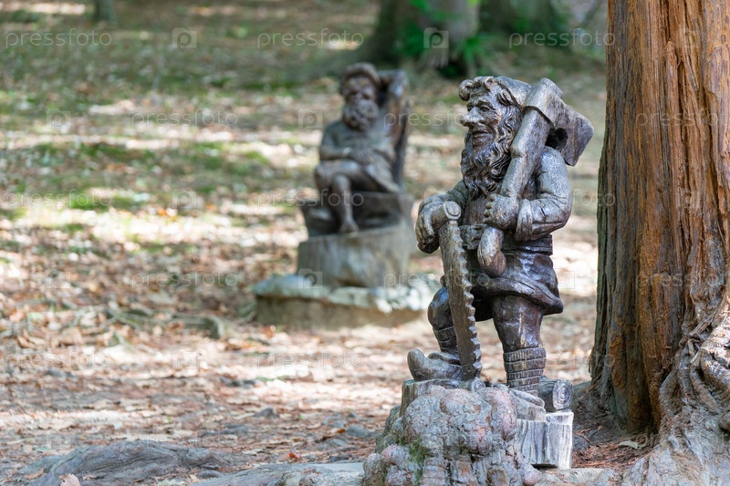 Сочи, Россия-7 октября 2016 г.: Деревянные скульптуры в дендрарии города