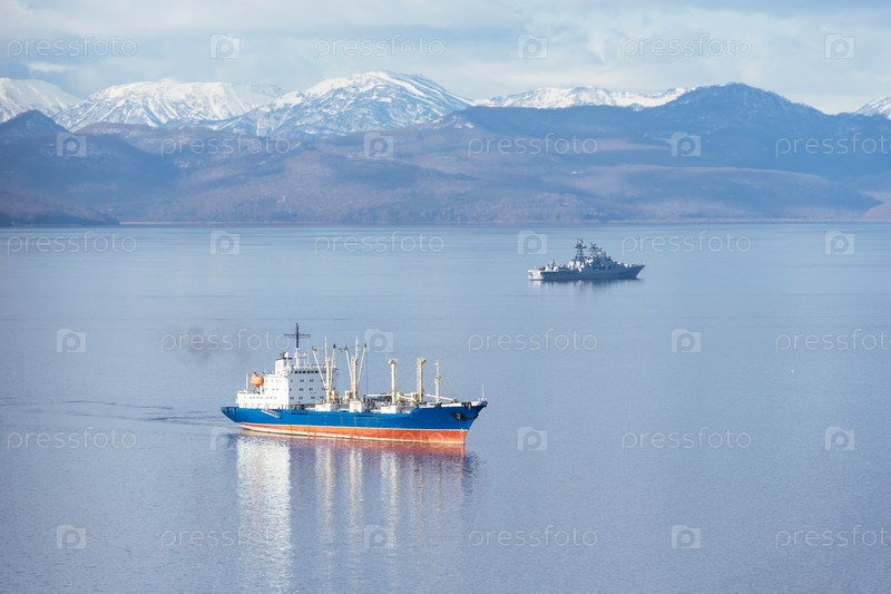Морской пейзаж с кораблями в Авачинской бухте, Камчатка