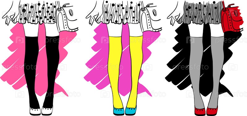 Набор векторных модных иллюстраций набор женских ножек в юбке в горошек. Модный стильный рисунок