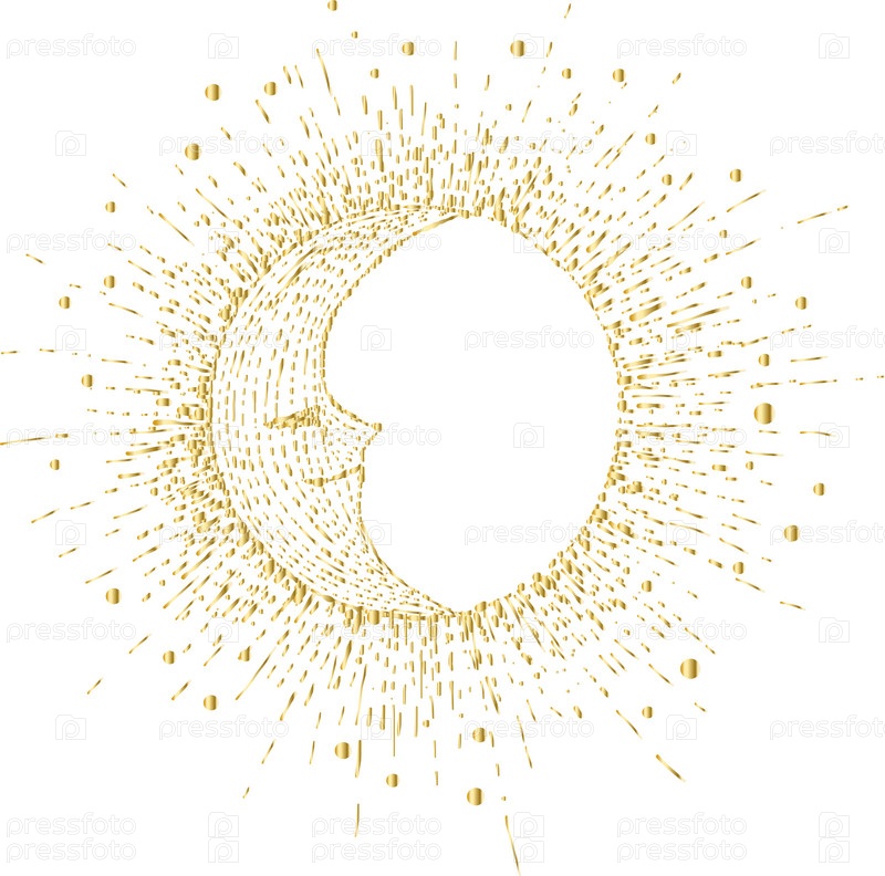 Золотая луна в небе. Иллюстрация в винтажном стиле. Старый сказочный элемент в модном графическом стиле