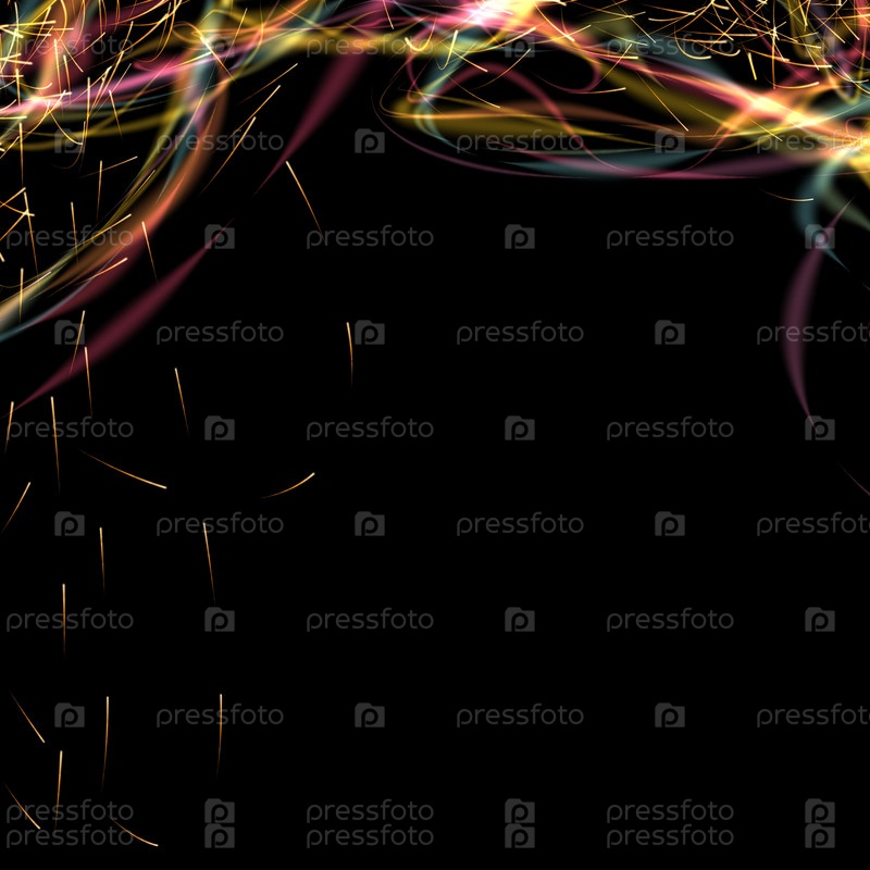 Праздничный цифровой красивый фон на черном. Волны дыма с яркими акцентами. Дизайн к празднику