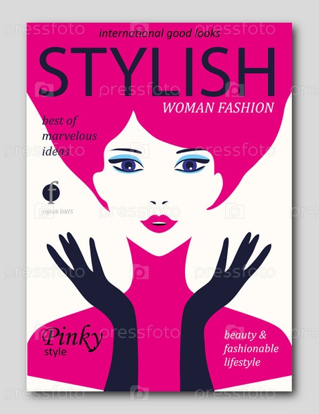 Абстрактная женщина с розовыми волосами и темными перчатками в стиле поп-арт. Дизайн обложки модного журнала