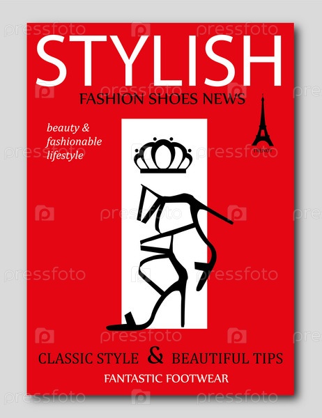 Мода модный силуэт черные туфли на высоком каблуке на красном фоне. Дизайн обложки модного журнала