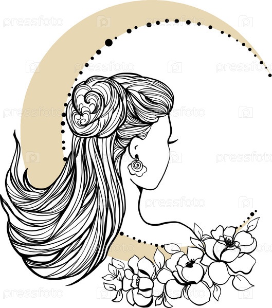 Графический силуэт красивой женщины. Королева луны и цветов. Иллюстрация в плоском стиле. Модная роскошь