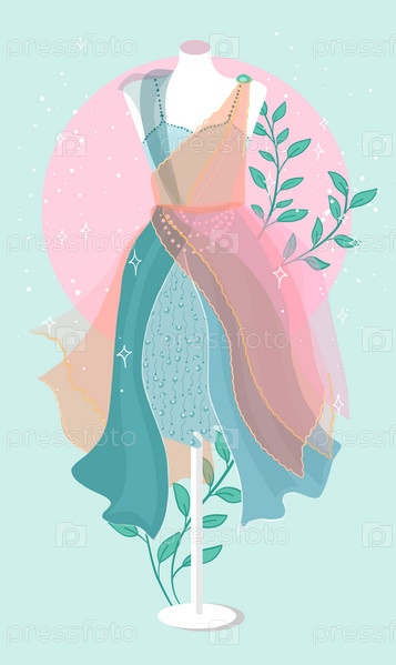 Манекен портного элегантного силуэта со звездами. Нежные цветы для фона. Красивый силуэт для стильных и роскошных дизайнов для винтажного праздничного стиля