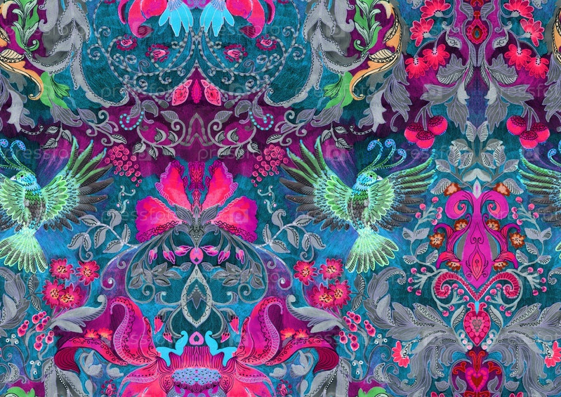 Цветочный узор с птицами