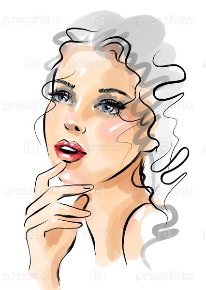 Цифровой модный портрет. Голова милой дамы с седыми длинными волосами