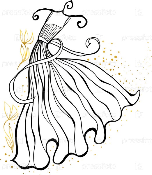 Элегантное силуэтное платье на вешалке с цветами и точками. Дизайн свадебного портного