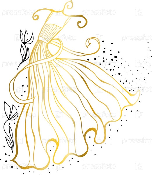 Элегантное силуэтное платье на вешалке с цветами и точками. Дизайн свадебного портного