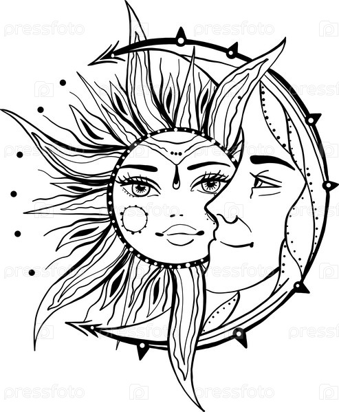 Луна и солнце. Иллюстрация татуировки в винтажном стиле. Старый сказочный элемент в модном графическом стиле