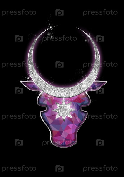 Цифровая галактика корова бык с серебряными рогами на черном фоне