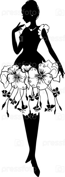 Красивая молодая женщина в цветочном платье. Векторная иллюстрация силуэта