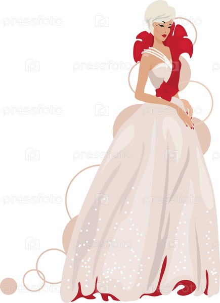 Элегантная невеста с розовым украшением. Векторная иллюстрация моды