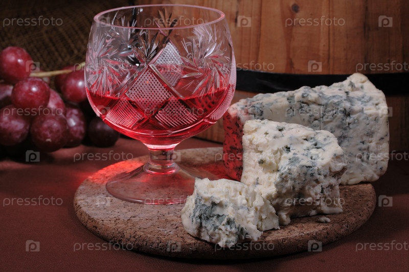 Натюрморт с вином и сыром на деревянном столе