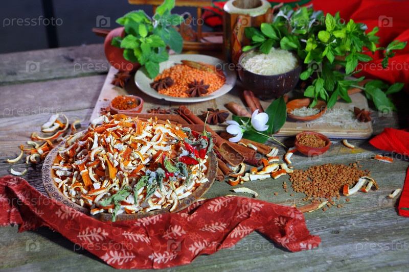 Индийские специи на деревянном столе