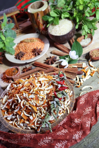 Индийские специи на деревянном столе