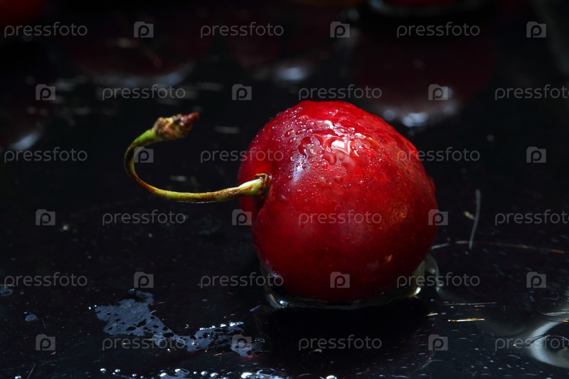 Мокрая черешня на черном фоне
