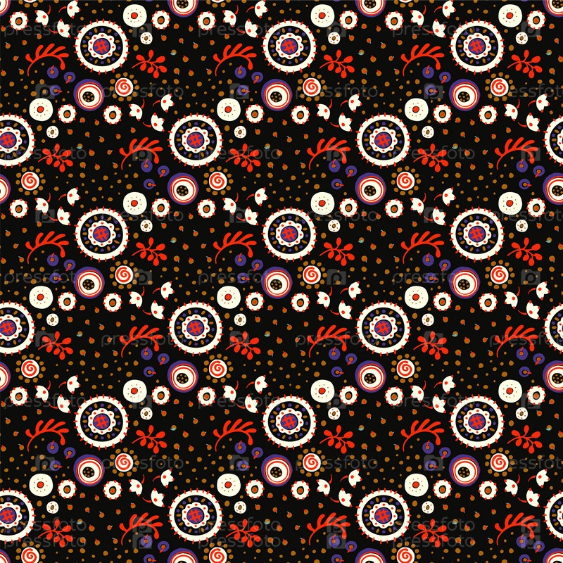 Бесшовный узор с фантазийными цветами, этнический вращающийся повторяющийся дизайн ткани и плитки, натуральные обои, иллюстрация завитка цветочного декора. Пейсли печать рисованной элементы.Украинский узор