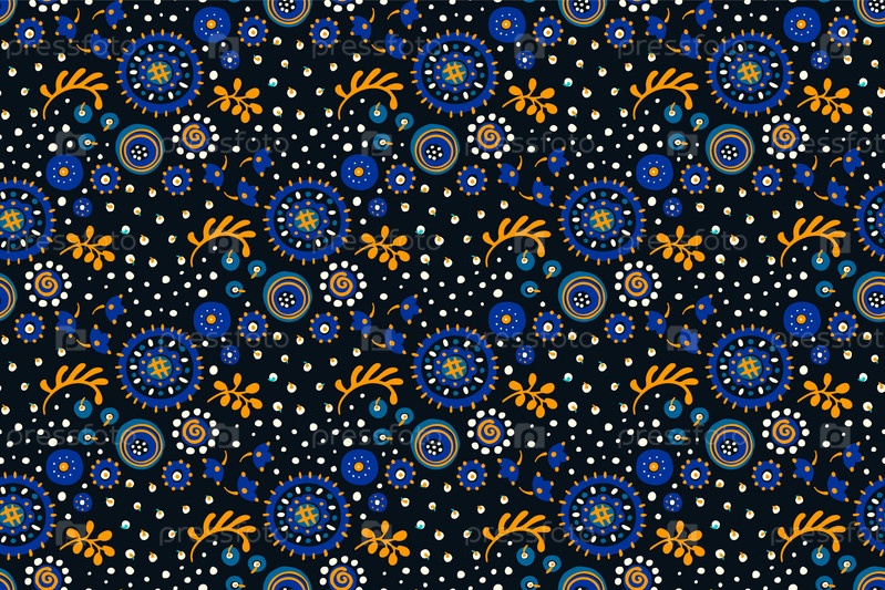 Бесшовный узор с фантазийными цветами, этнический вращающийся повторяющийся дизайн ткани и плитки, натуральные обои, иллюстрация завитка цветочного декора. Пейсли печать рисованной элементы.Украинский узор